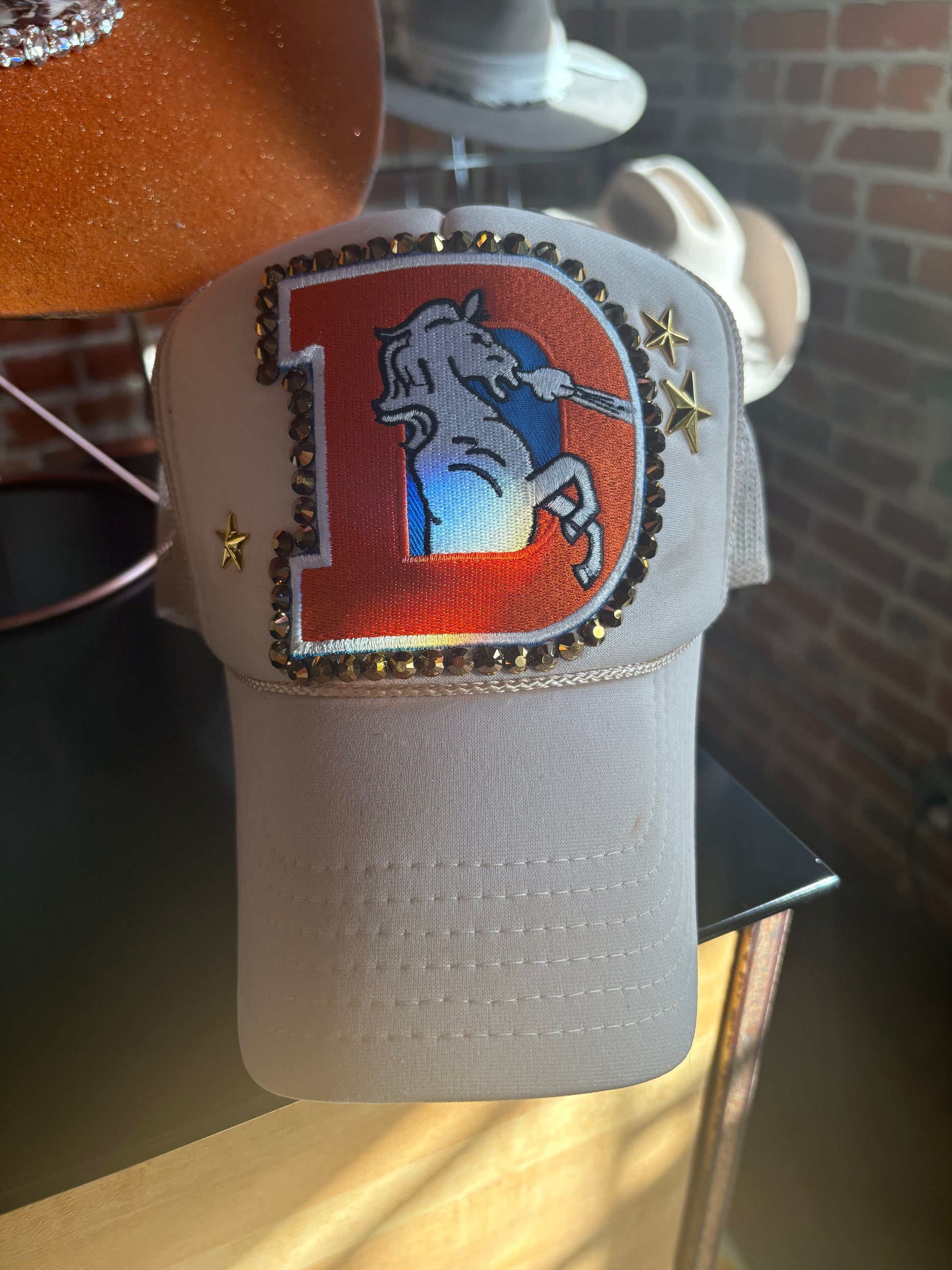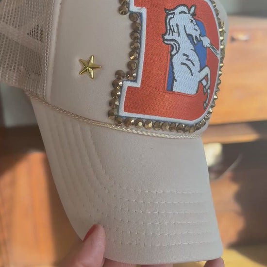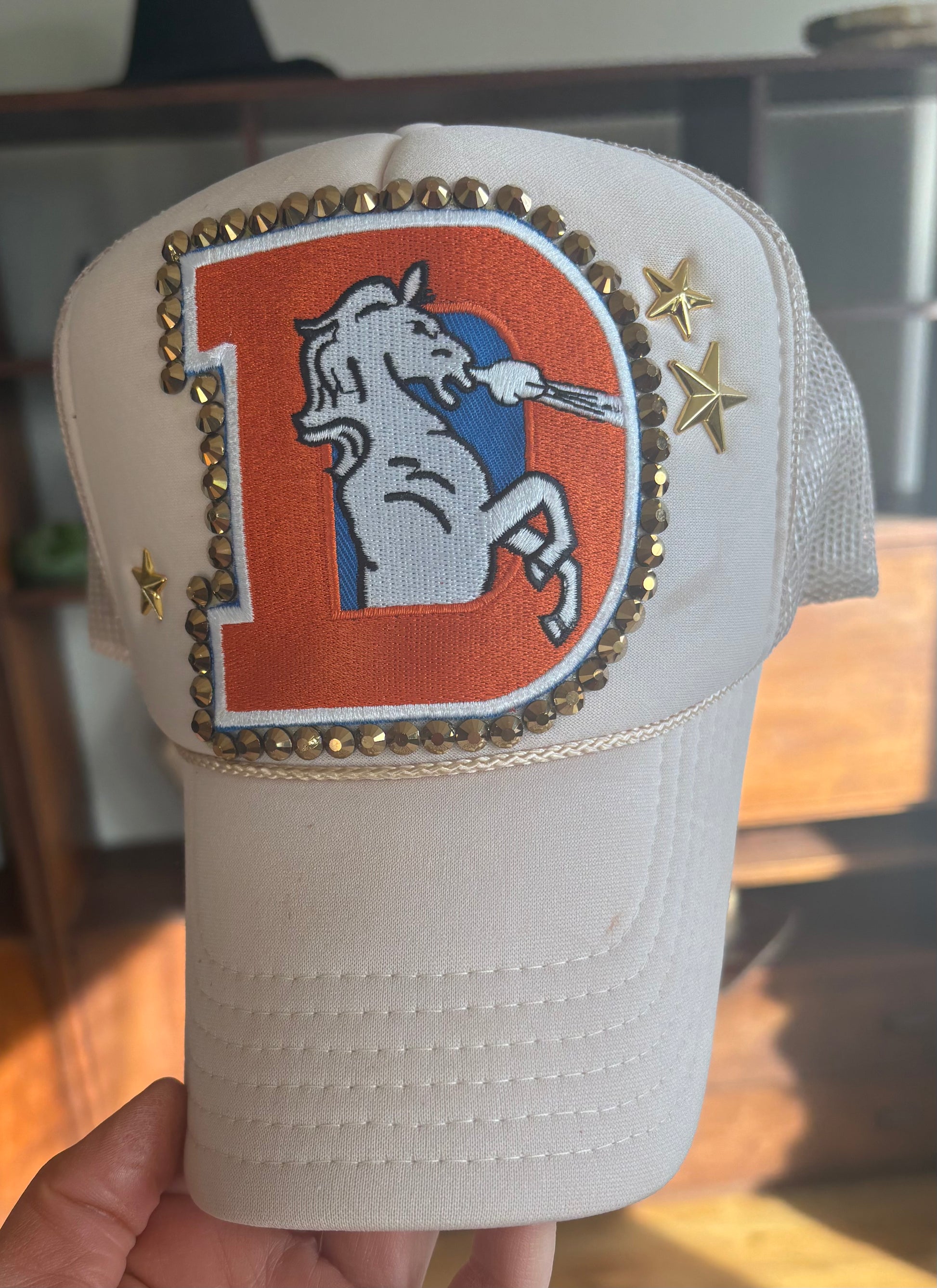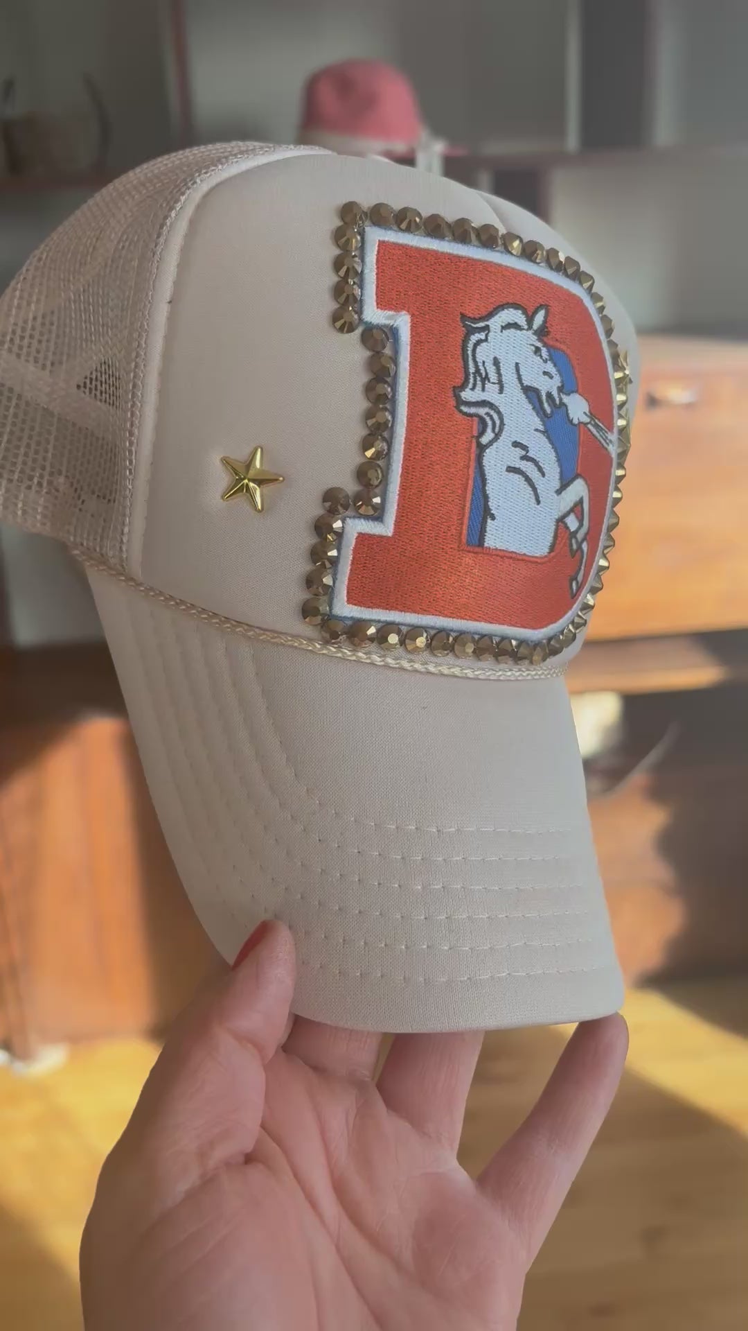 Star Studded Golden Broncos Inspired Trucker Hat. I love making each one of these by hand!